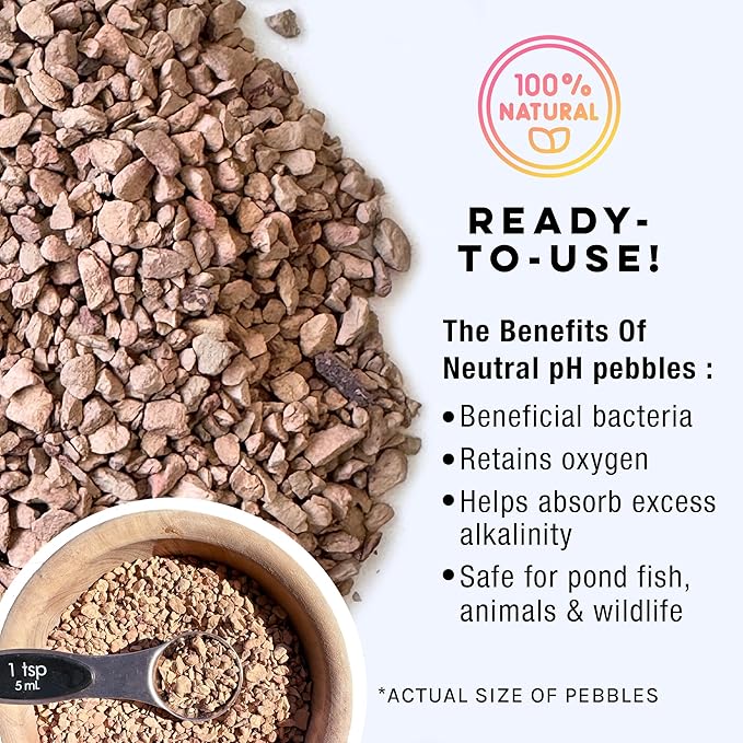 - MAINTAIN A HEALTHY AND BALANCED POND: The neutral pH pebbles will not leach nutrients into the water where it can promote undesirable growth; Retains oxygen and helps absorb excess alkalinity