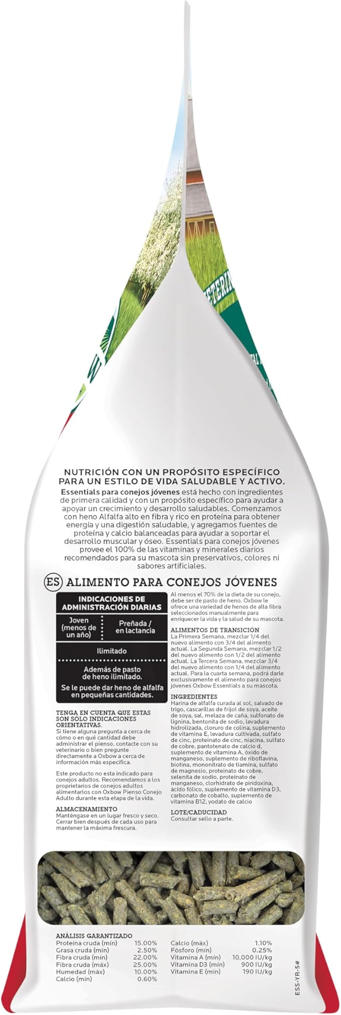 Oxbow Essentials Rabbit Food, Young Rabbit, Made with Oxbow Alfalfa Hay, Pet Food Pellets with Vitamins & Minerals, Small Animal Pet Products, Bunny Supplies, Made in USA, High Fiber, 5 lb. bag