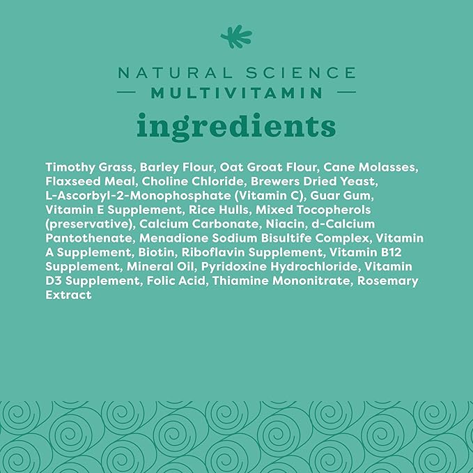 Oxbow Animal Health Natural Science Multi-Vitamin, High Fiber Supplement for Rabbit & Guinea Pig, Made with Timothy Hay, Multi-Pet Households, Omega 3 & 6 Fatty Acids, Made in USA, 4.2 oz Bag