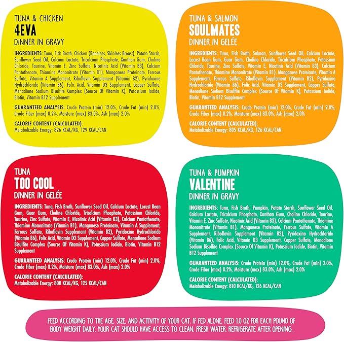 - Batch O Besties Variety Pack, Four of our most popular recipes with wild caught skipjack tuna in a delicious gravy and gelee, 5.5oz Can, Pack of 8