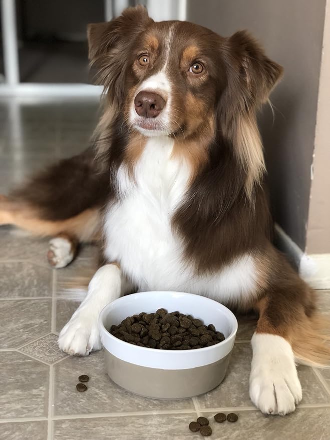 Waggo Dipper Ceramic Dog Bowl for Small and Large Breeds - Heavyweight and Durable Pet Food and Water Dish Crock, Dishwasher Safe, Modern (Vintage Grey, Small)