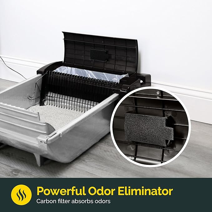 - MESS & ODOR CONTROL โ High walled sides decreases litter scatter, spray and ensures cat litter clumps stay inside this litter box. Waste is raked into covered and lined receptacle.