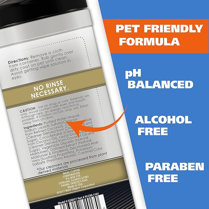 Wahl USA Pet Refresh Cleaning Wipes for All Dog Breeds - Use on Ears, Nose, Paws, Bottom, & Sensitive Areas - 50 Wipes - Model 820017A