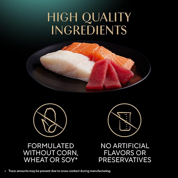 - Delicious Recipe: Sheba Perfect Portions Wet Cat Food Pate is formulated without grains, corn, or soy and contains no artificial flavors or preservatives; although trace amounts may be present due to cross-contact during manufacturing