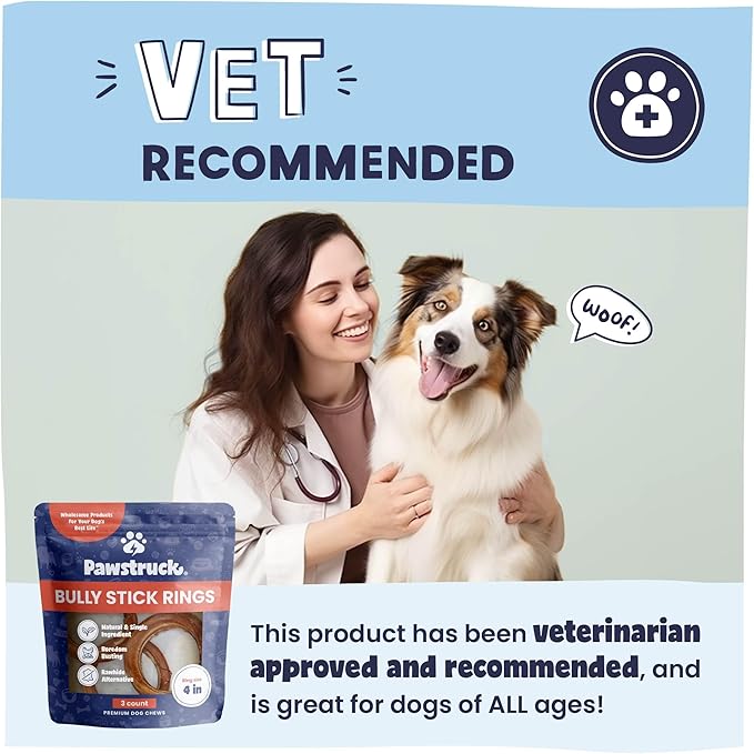 Pawstruck All-Natural 4" Bully Stick Rings for Dogs - Rawhide-Free, 100% Beef, Single Ingredient Dental Chew Bones - Fully Digestible, Low Odor - 3 Pack - Packaging May Vary