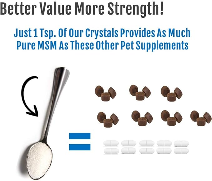 - Optimal for Dogs, Cats & Horses with Joint Stiffness or Wellness Issues: Supports joint comfort, mobility, skin health, coat health and digestion with 99.9% pure MSM