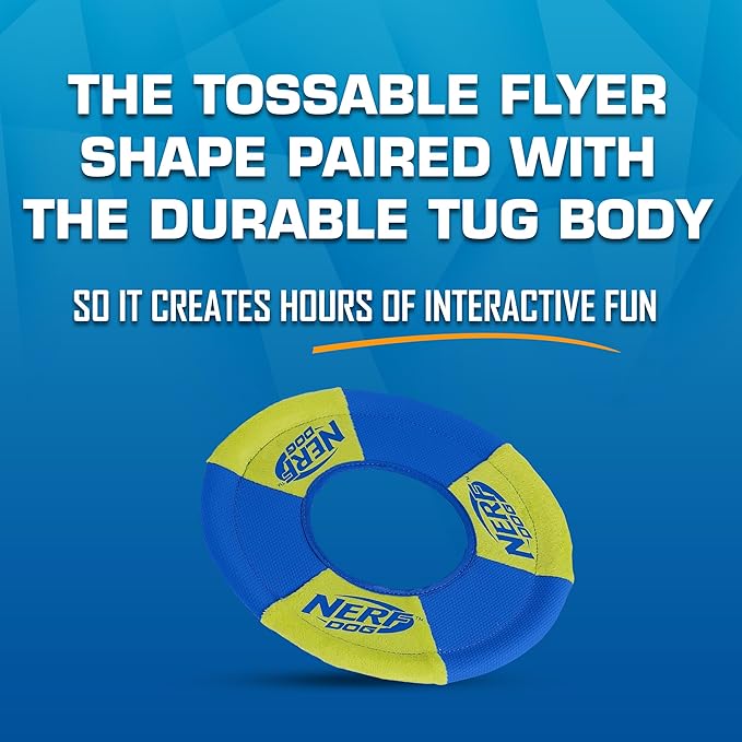 - Dog Tug of War Toy: Each Nerf Dog Trackshot Toss and Tug Ring outdoor dog toy is 9 inches in diameter, making them ideal dog fetch toys for large dogs and medium dogs