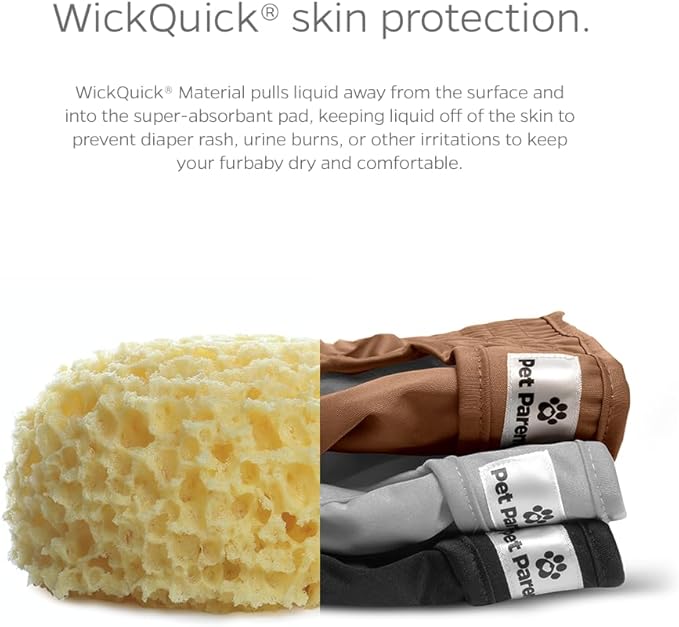 - HIGHLY ABSORBENT DOGGIE DIAPERS: Because we know your Great Dane 'goes' more than your Chihuahua, the diaper pad that is sewn into our dog diapers female increases with the size, because bigger dogs = more liquids. WickQuick material wicks liquid from the surface and into the dog period diapers, keeping your furbaby dry and reducing urine burn or irritation. Our diapers also have a waterproof outer layer to prevent leaks and damage to rugs, carpets, upholstered chairs and sofas.