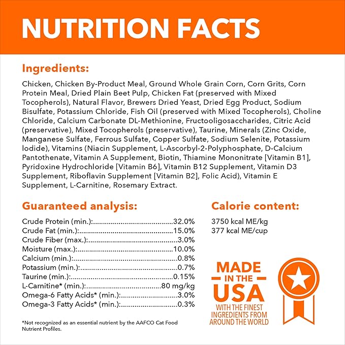 - Complete and Balanced for Adult Cats: 100% nutrition, 0% fillers, this dry cat food supports whole-body health with essential nutrients and is enriched with antioxidants for a strong immune system