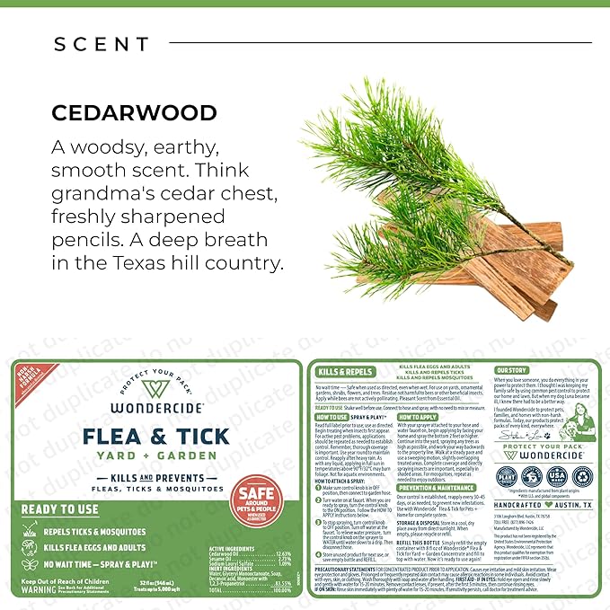 - POWERFULLY EFFECTIVE. Powered by cedar oil, Wondercide is pest protection that's proven to work, especially for flea, tick, and mosquito removal. Woman founded. Mom approved. Application coverage depends on water pressure and walking speed.