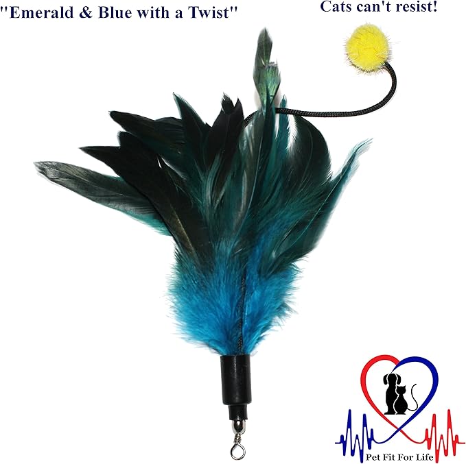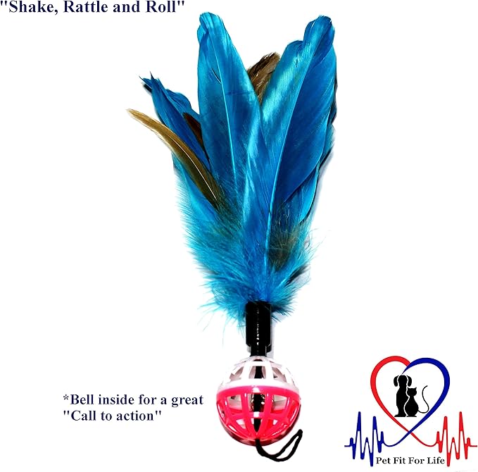 Pet Fit For Life 4 Piece Dual Rod Feather Teaser and Exerciser for Kitten and Cats - Cat Toy Interactive Cat Wand