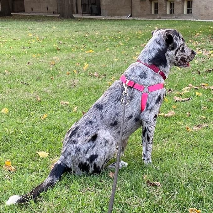 PUPTECK No Pull Dog Harness Soft Adjustable Basic Nylon Step in Puppy Vest Outdoor Walking with ID Tag Medium DeepPink