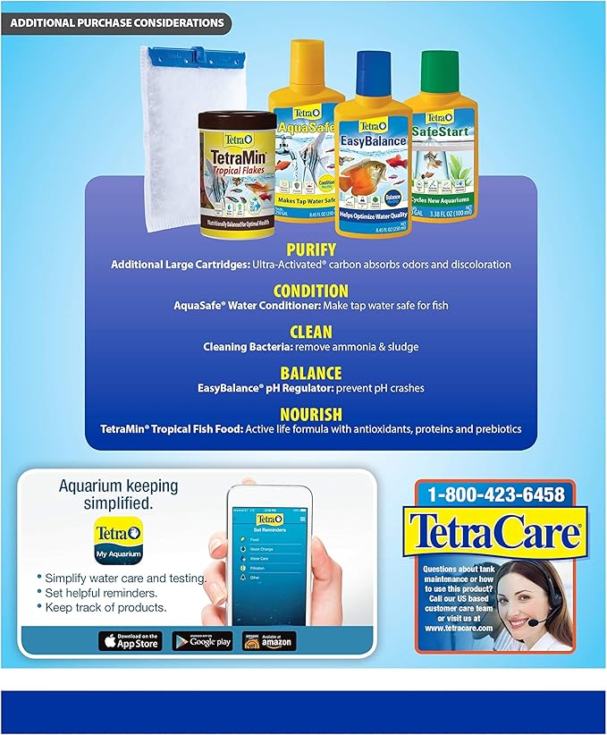 - CARTRIDGE REFILLS: Change cartridges monthly; uses large-sized Tetra Whisper Bio-Bag Filter Cartridges (refills sold separately).