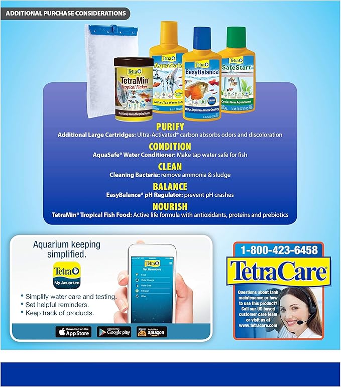 - CARTRIDGE REFILLS: Change cartridges monthly; uses large-sized Tetra Whisper Bio-Bag Filter Cartridges (refills sold separately).