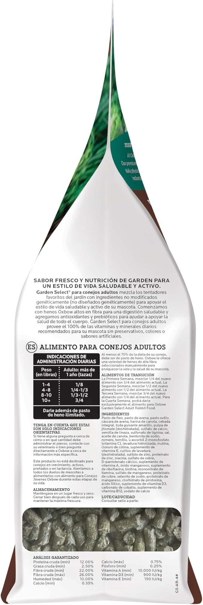 Oxbow Animal Health Garden Select Rabbit Food, Adult Rabbit, Made Timothy Hay, Vitamin & Mineral Rich Pet Food Pellets, Bunny Supplies, Made in USA, High Fiber, 4 lb Bag