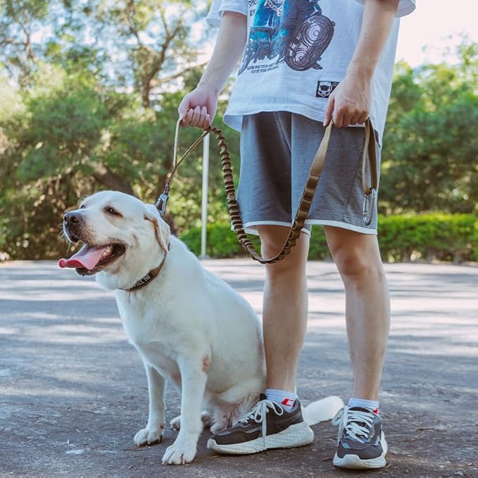 EXCELLENT ELITE SPANKER Tactical Bungee Dog Leash Military Adjustable Dog Leash Quick Release Elastic Leads Rope with 2 Control Handle(Coyote Brown)