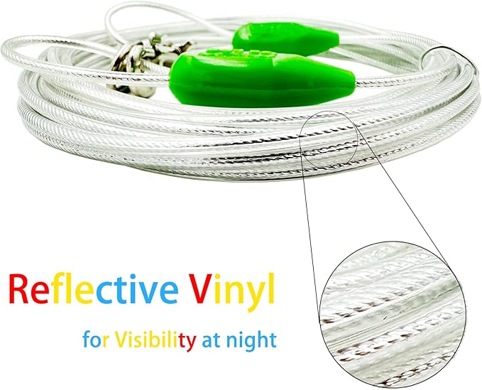 Petest 15ft Reflective Tie-Out Cable for Small Dogs Up to 35 Pounds