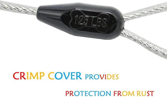 - 30 ft, ultra strong tie-out cable for dogs up to 125 lbs.