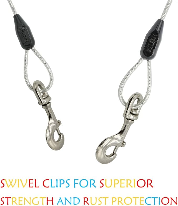 - Snaps, which is durable and anti-rust, on both ends can be easily attached to a post or stake for a protection of dog's neck.