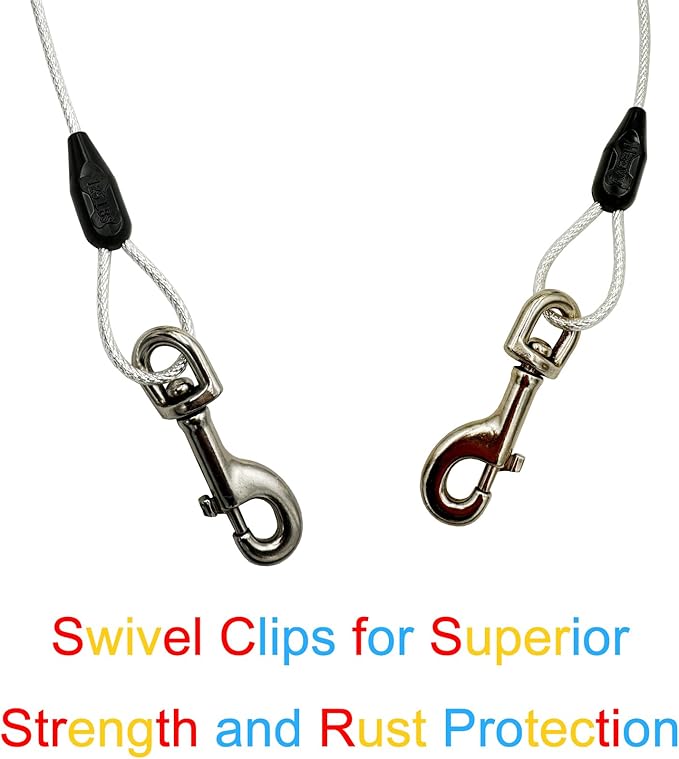 - Snaps, which is durable and anti-rust, on both ends can be easily attached to a post or stake for a protection of dog's neck.