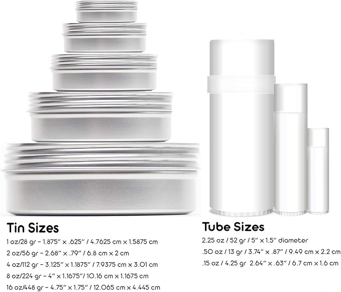 - Available in 1,2,4, 8 and 16 ounces tins,.15 ounces and .50 ounces tubes