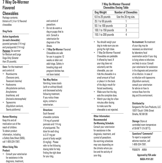 - Dewormer for Dogs: PetArmor 7 Way Chewable De-Wormer for dogs treats and controls 7 species of worms: 2 types of tapeworms, 2 types of roundworms, and 3 types of hookworms