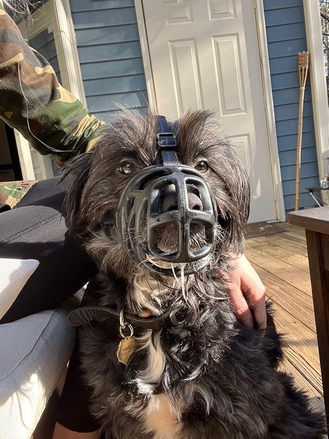 - Great Starter Basket Muzzle for Training: The Mayerzon anti bite dog muzzle is an safe and humane tool for training dogs. The breathable hollow-out design allows for food rewards, drinking, and panting (when hot or stressed) , helping to create a positive association with wearing the humane dog muzzle. Once your dog gets used to the no bite muzzle for dogs and stop biting, fighting, digging, nipping, chewing, and eating sticks or bigger items.