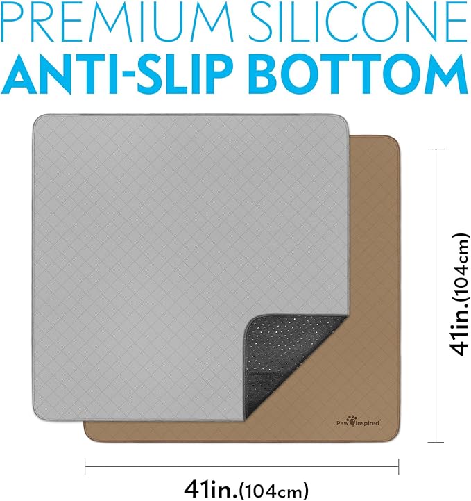 Paw Inspired Washable Pee Pads for Dogs (2 Pack), Leakproof, Non-Slip Reusable Puppy Pads for Potty Training, Whelping, Waterproof Mat (41x41 Inch, Pack of 2)