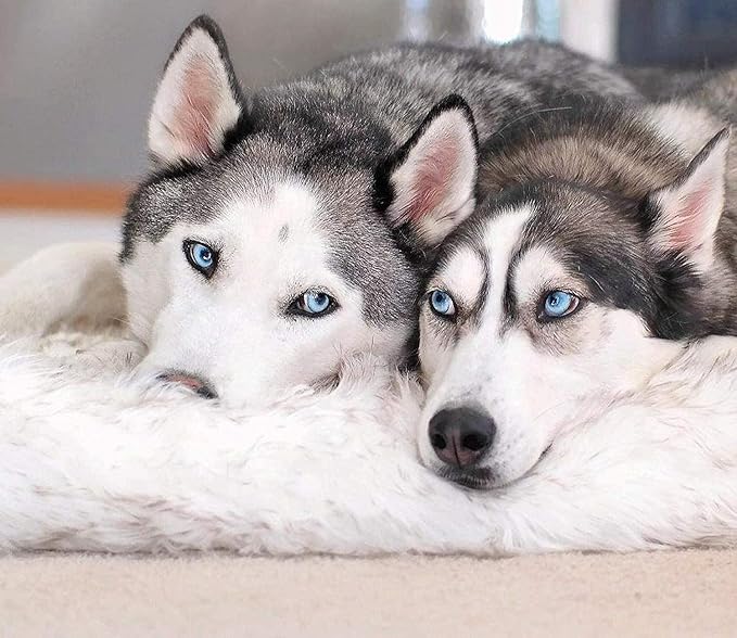 PupRug Orthopedic Dog Bed for Large Dogs with Fluffy Soft Faux Fur and Memory Foam for Joint Pain Relief, Machine Washable and Waterproof Couch Bed, White, Extra Large