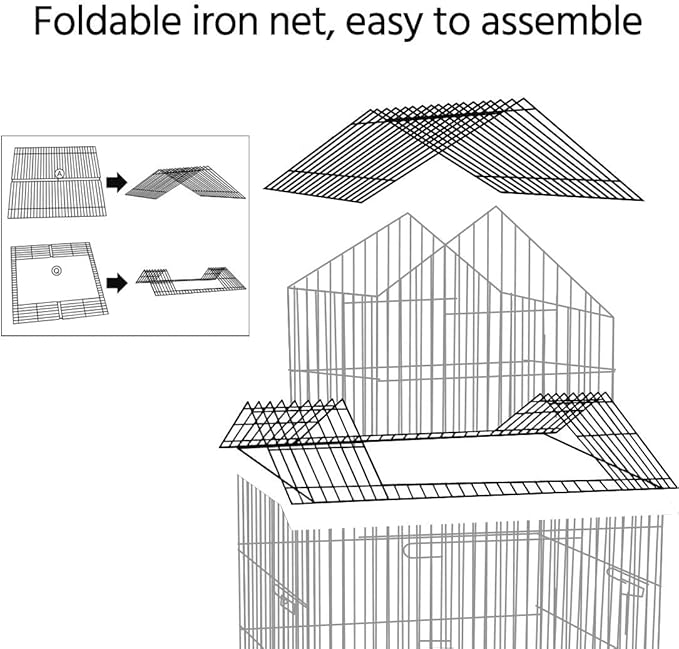 - Slide-out tray: The slide-out litter tray makes cleaning a breeze. The bottom grate above the tray prevents birds from walking directly on the droppings, ensuring your pets’ health and the tidiness of the cage