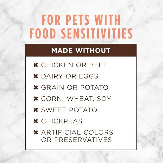 - GRAIN FREE CAT FOOD FOR CATS WITH SENSITIVITIES: Instinct Limited Ingredient cat food is made with 1 protein & 1 vegetable. No grain, dairy, eggs, chicken, beef, sweet potato, potato, chickpeas, corn, wheat, soy, artificial colors or preservatives.