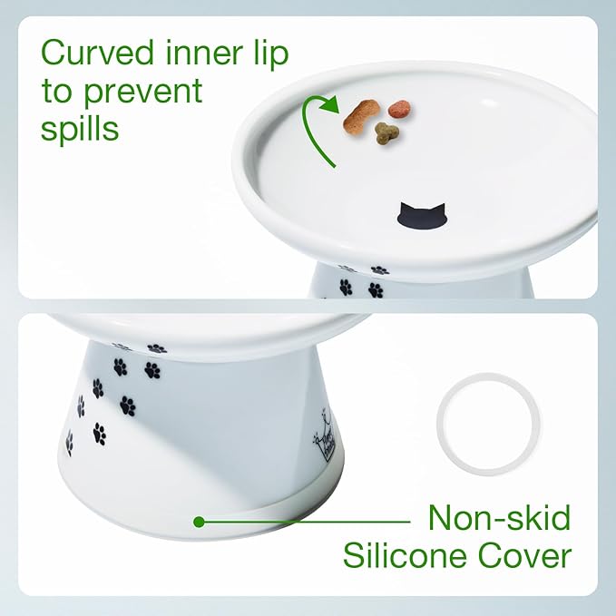 - Versatile Use: Ideal for flat-faced pet, senior cats, messy eaters, and big kittens; solves whisker fatigue, vomiting, obesity, aid digestion, neck straining, and feeding discomfort with elevated ergonomic design.