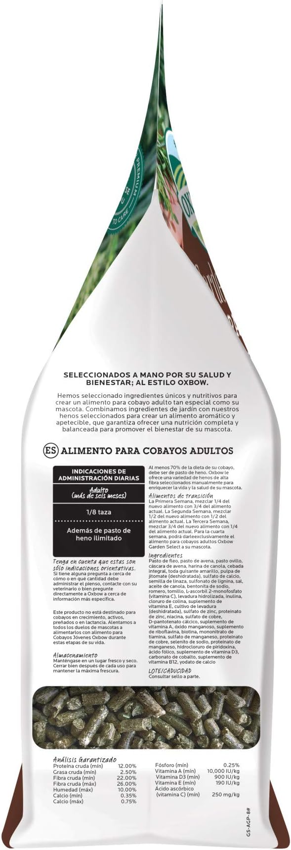- ADULT GUINEA PIG PELLETS: Immerse your pet in the natural medley of our Garden Select Adult Guinea Pig Food; These pellets contain a garden-inspired, hand-selected recipe of timothy, orchard, and oat hay, resembling guinea pigs' natural habitats
