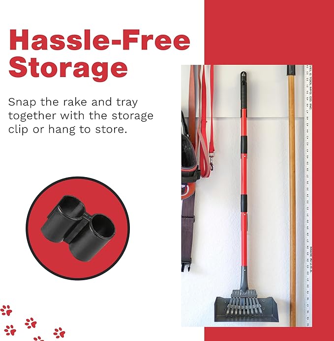 - Easy assembly, simple storage - Assembling the pooper scooper for medium dogs is a breeze out of the box and is as simple as a push and click. No extra tools needed! Push-pin installation adds extra durability compared to twist installation that unravels with use. Use the holes in the handle grip to store on the wall in your garage or tuck it away neatly in a backyard corner for convenient access.
