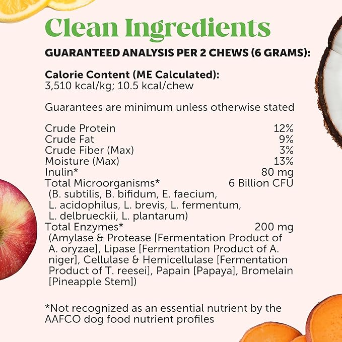 - THE INSIDE STORY: These soft chews are formulated with probiotics, the “good bacteria” that support digestion, gut & immune health. This is also a probiotic for dogs itching & licking paws. Plus, it supports sensitive stomachs with prebiotics for dogs that boost probiotics, & fiber that promotes regularity & a healthy gut microbiome. Sweet potato & pumpkin are also in the mix for added fiber & nutrients, as well as enzymes that help digestion & overall health.