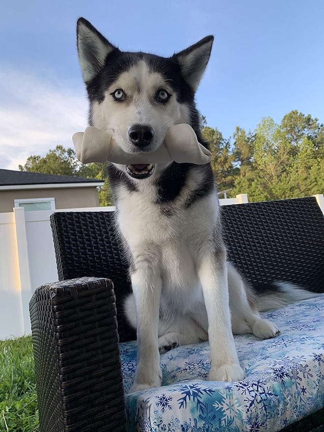 - ['Premium Quality: Sourced from grass fed Brazilian cows which makes our rawhide long lasting and imbued with a true meaty flavor. Our rawhide bones are a great alternative to chews made from plastic or rubber.', 'Safe and healthy, this USDA Certified, low in fat with no chemicals is a great way to reward your dog or simply give him a treat. All our products are 100% hormone, antibiotic, & preservative free and have a great natural taste that your pet will love!', 'Promotes Tooth Hygiene and Discourages Bad Behavior: Rawhide naturally cleans your dog's teeth, strengthens gums, and clears their bad breath. It also prevents them from chewing on your furniture and belongings. This makes our chews great for teethers!']