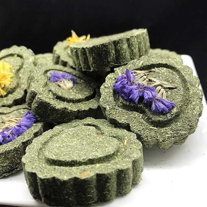 - [ SUITABLE CHEW SIZE ] - PeSandy pet molar toys have about 18 - 20 pcs Timothy hay circles, each Timothy hay circle size is about 4.5 x 1.3cm/1.77 x 0.51 inches, it's suitable for a small animal chewing. Please Note: About 11 of them have edible flowers.