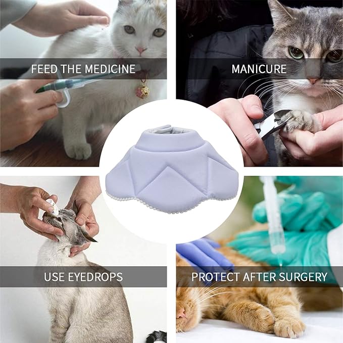 - MATERIAL:Soft cat cone is made of cotton,Slight waterproof effect,alternative to the hard plastic cone,doesn’t hurt the pet’s skin.With this soft neck cone collar,the cute pet can walk freely and stress-free,they can lay their head in any position.Collar cleaning is very important,soft cat cone can be machine washed without worrying about deformation.It can be folded to store when it not in use.
