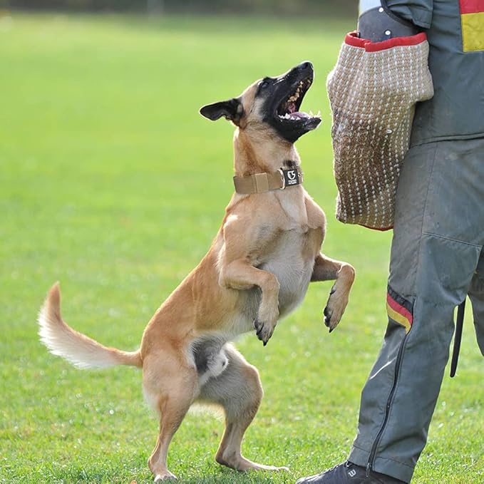 TSPRO Tactical Dog Collar 1.5 Inch Wide Thick Dog Collars with Heavy Duty Metal Buckle, Durable, Strong, Adjustable for Medium to Large Dogs (Khaki L)