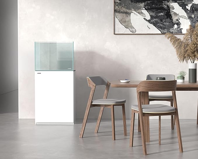 - 【Stable and Modern Design】 Features a contemporary minimalist style suitable for rimless aquariums, seamlessly matching any home decor with its simple black and white theme. The cabinet edges are treated with German sealing edge technology for a perfect seamless appearance, accompanied by spacious storage for large aquarium equipment.