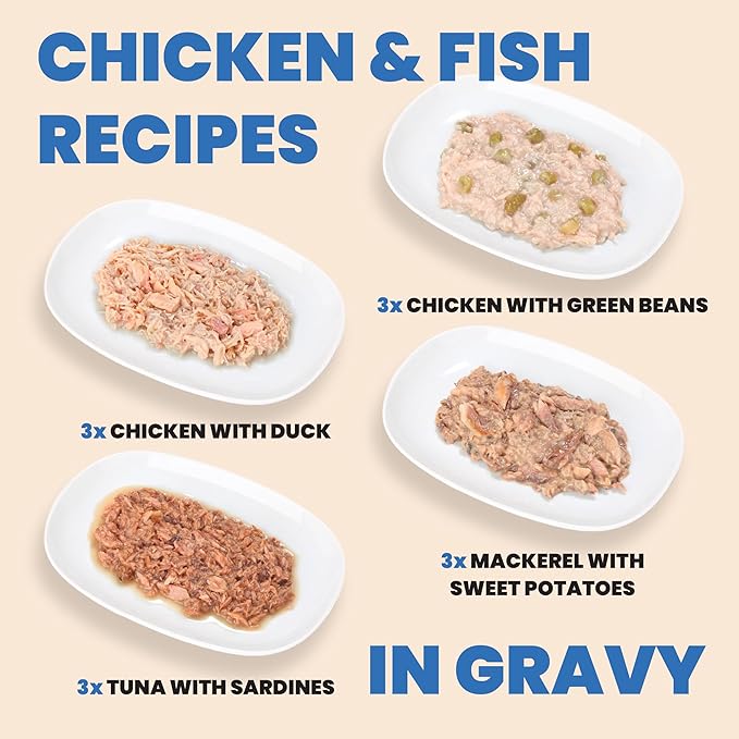 - PREMIUM, HUMAN-GRADE INGREDIENTS โ Our Wet Cat Food is made with HQS meat and fish as the first ingredient, originally fit for human consumption, now crafted exclusively for pets. With tuna, chicken, duck, sardines, green beans, mackerel & sweet potatoes.
