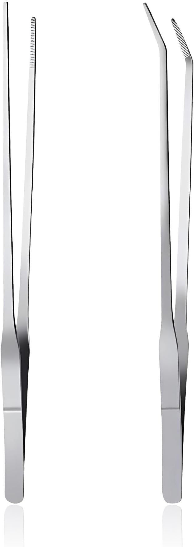 Feeding Tongs 2pcs Stainless Steel Aquarium Long Tweezers 27cm/10.6 inches Straight Curved Tweezers for Fish Tank Aquatic Plants Reptile Lizard Gecko Snake Spider Bird