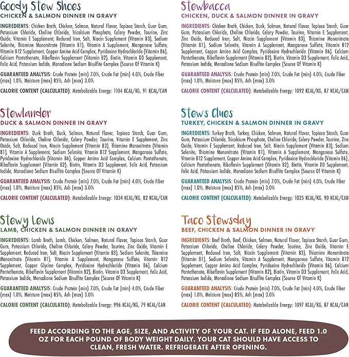 - Spoil Me Stewpid! Variety Pack (3oz cans, pack of 18) Weruva’s Stew Sampler! Spoil your cat with six different super premium cat food stews!