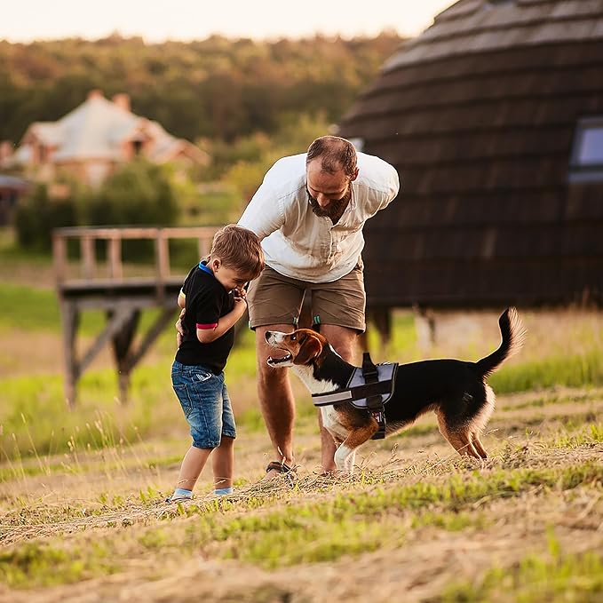Dogline Dog Harness, Reflective No-Pull Adjustable Vest with Handle for Walking, Training, Breathable, No - Choke Harness for Small, Medium or Large Dogs Room for Patches Girth 15 to 18 in Grey