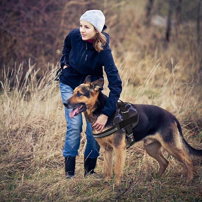 Dogline Dog Harness, Reflective No-Pull Adjustable Vest with Handle for Walking, Training, Breathable, No - Choke Harness for Small, Medium or Large Dogs Room for Patches Girraffe Grey XS 15"-18"