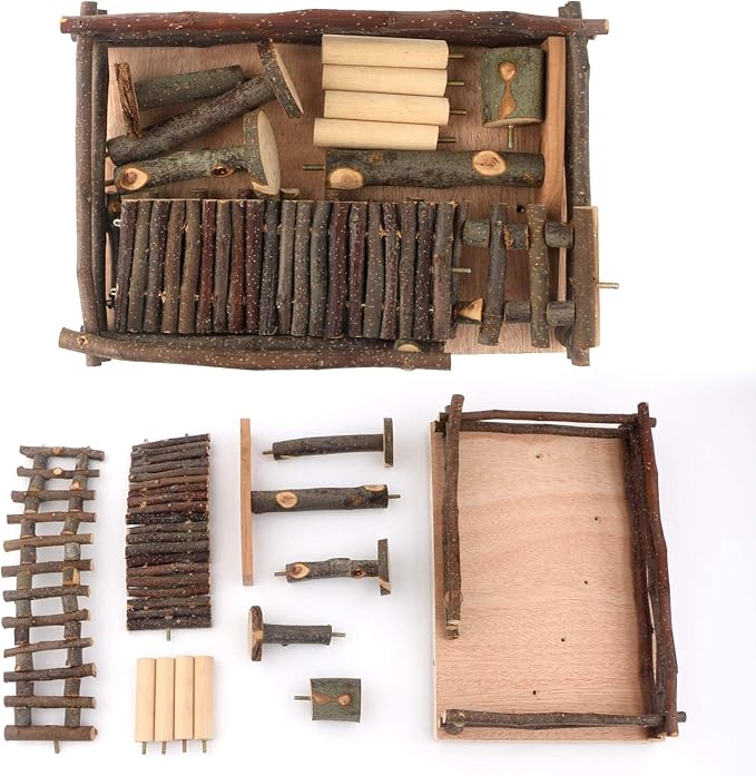 - 【Stress Relief &Exercise】This Hamster climbing chewing toys consist of wooden bridge, wooden stand, wooden climbing ladder, wooden railing and wooden platform. The undulating arrangement effectively exercises hamsters.