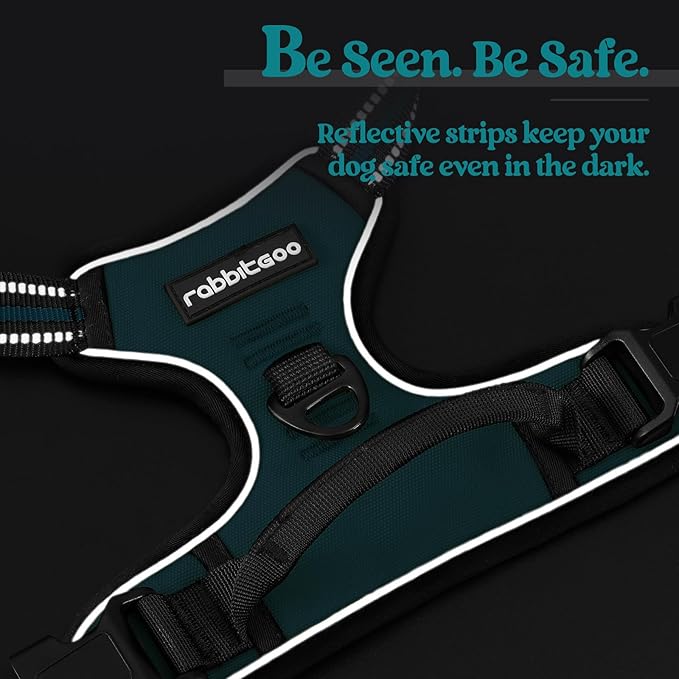 rabbitgoo Dog Harness No Pull with 2 Leash Clips, Adjustable Soft Padded, Reflective Oxford No Choke Pet Vest with Easy Control Handle for Small Dogs, Blue Coral, S