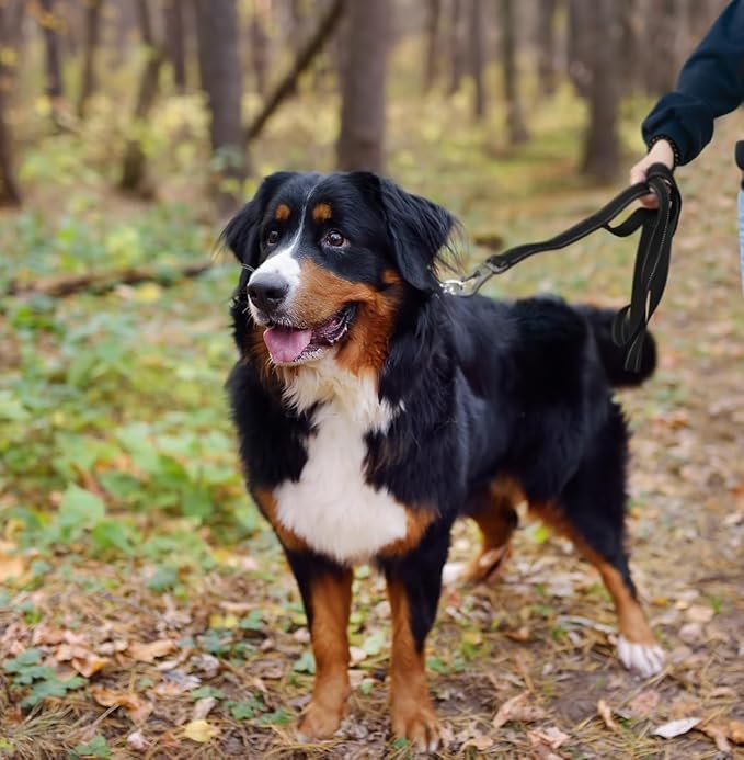 - 【SOFT PADDED DUAL HANDLES】4FT ideal length, 1 inch width leash for medium dogs, Comfortable Padded handles protect your hand without rope burn. Extra Handle for traffic control. Black dog leash is perfect for outdoor activities, running, walking or training.