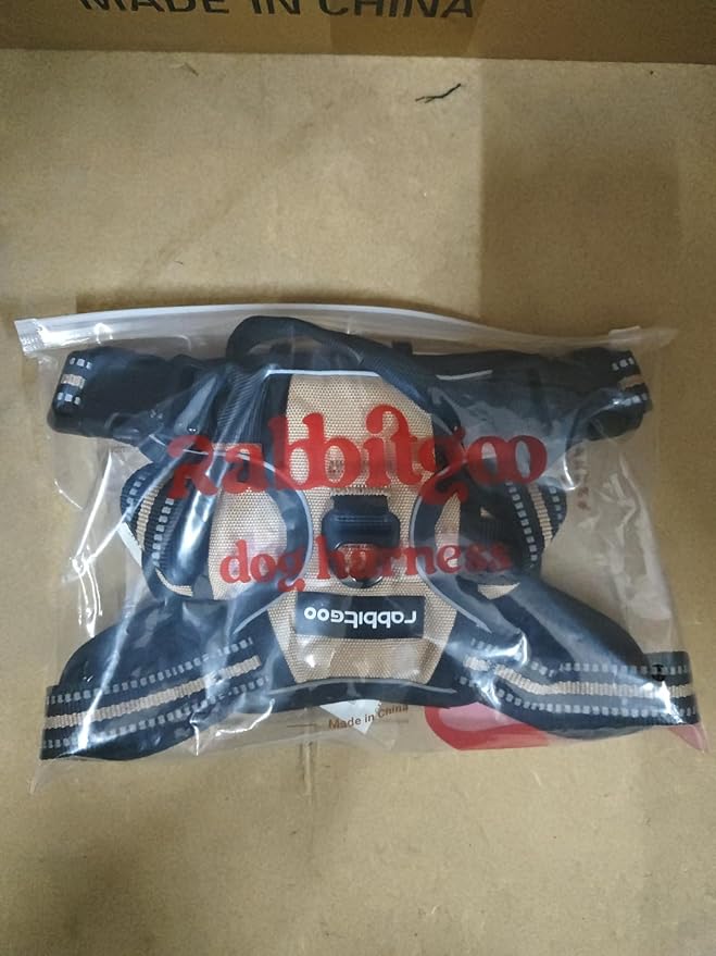 rabbitgoo Dog Harness No Pull with 2 Leash Clips, Adjustable Soft Padded, Reflective Oxford No Choke Pet Vest with Easy Control Handle for Medium Sized Dogs, Beige, M