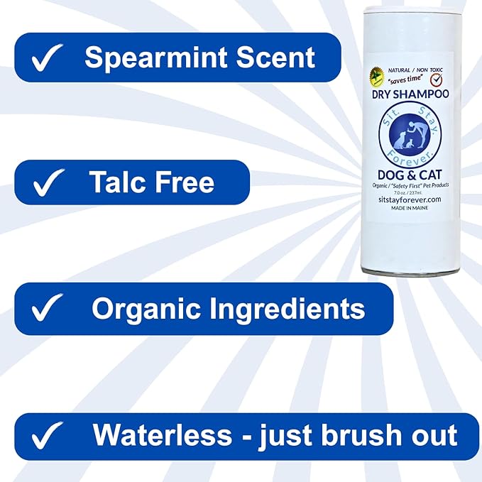 Sit Stay Forever Dry Powder Shampoo for Dogs, Dry Shampoo for Smelly Dogs and Cats, Talco para Perros y Gatos, Shampoo for Stinky and Itchy Skin, Waterless Dog Shampoo, 28 oz